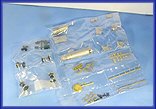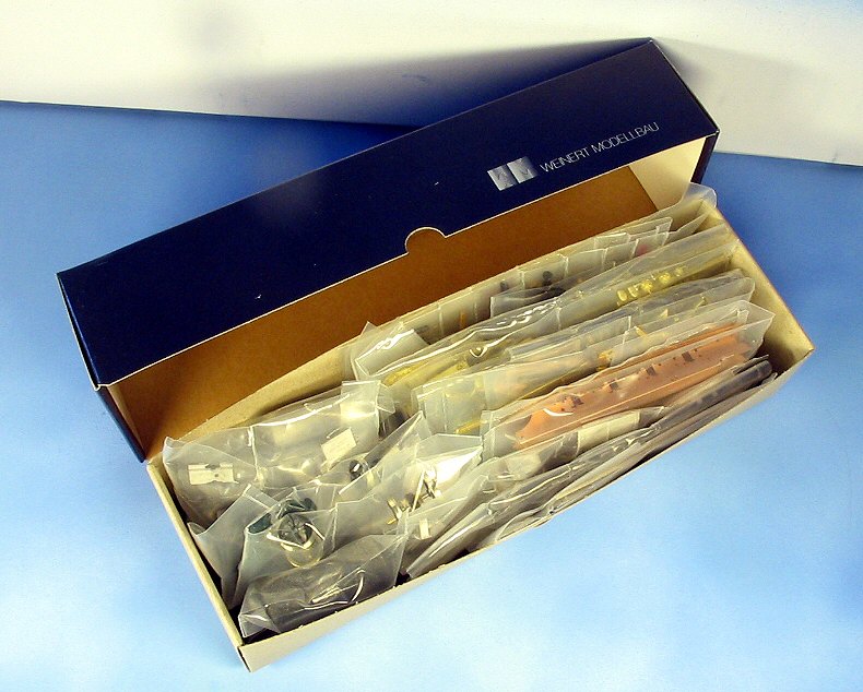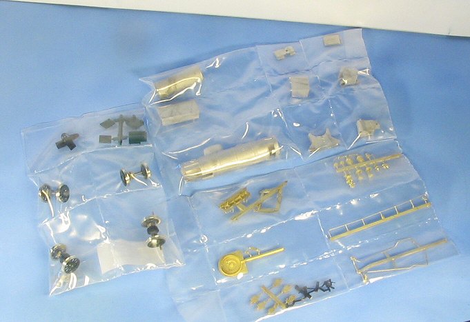 Die einzelnen Bauteile sind in Plastiktüten eingeschweißt. Die Teile, insbesondere die Teile aus Weißmetall, entnehme ich erst dann der Tüte, wenn ich sie wirklich brauche. Gerade Weißmetall ist verhältnismäßig weicht. Die feinen Nieten sind sehr schnelle beschädigt, wenn die Teile unachtsam über eine harte Unterlage geschoben werden. In der Tüte sind die Teile dagegen gut geschützt. Nach dem Entnehmen lagere ich die Teile aus Weißmetall immer auch einer weichen Unterlage.