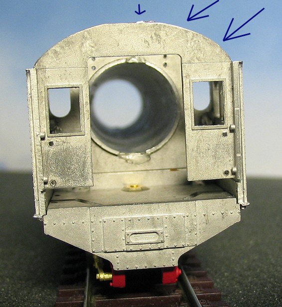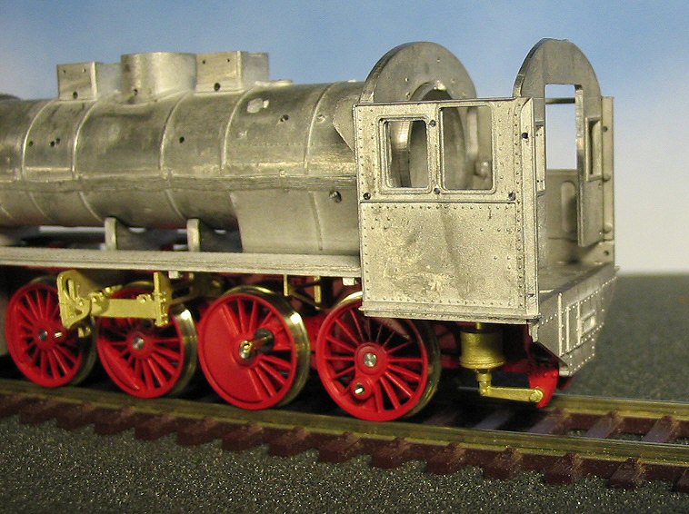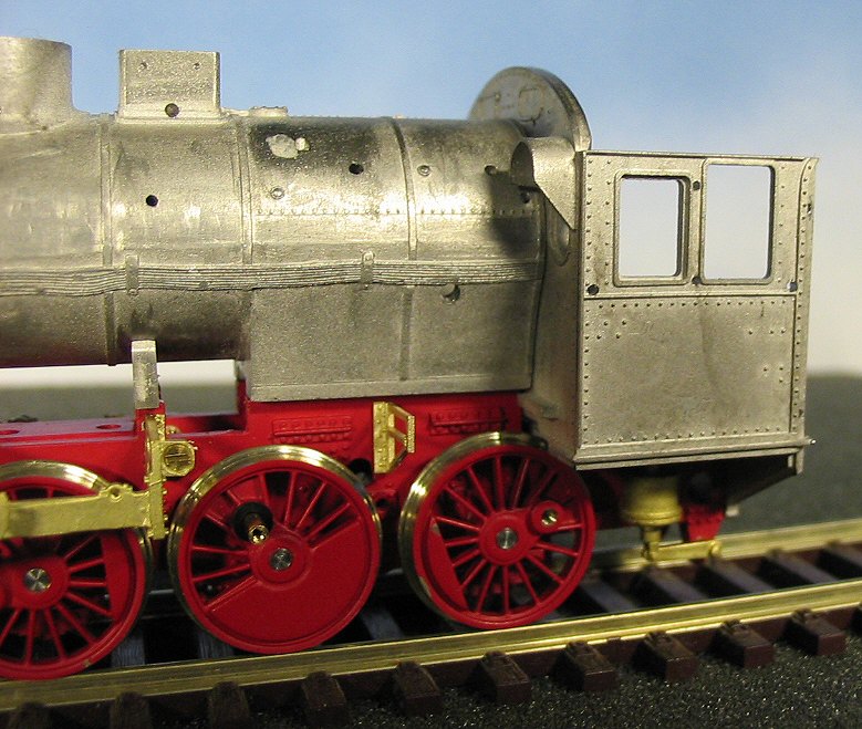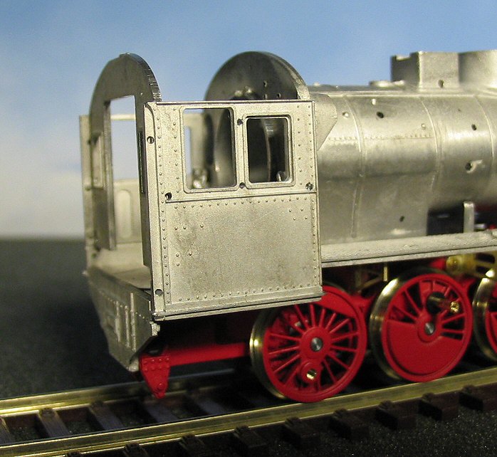 Bevor das Dach angepasst wird, sollten die Seitenteile verlötet bzw. verklebt sein. Am Dach waren bei diesem Bausatz Anpassungsarbeiten erforderlich. Da das Dach an den Seiten im hinteren Bereich nicht richtig schloss, musste am oberen Rand der Führerhausrückwand ein wenig Material abgetragen werden. Bei den Bausätzen sind meistens irgendwo Anpassungsarbeiten erforderlich. Das hat aber nichts mit der Qualität zu tun, sondern ist dem Schwundverhalten von Weißmetall geschuldet. Die Urmodelle geringfügig größer als das gegossene Teil. Da beim Erkalten das Weißmetall schwindet, ergeben sich teilweise geringfügige Abweichung. Wir reden aber hier nur von Zehnteln (mm). Entsprechend vorsichtig muss Material abgetragen werden. Immer nur wenige Züge mit dem Cutter über die Fläche schaben, dann wieder probieren ob das Dach schließt.