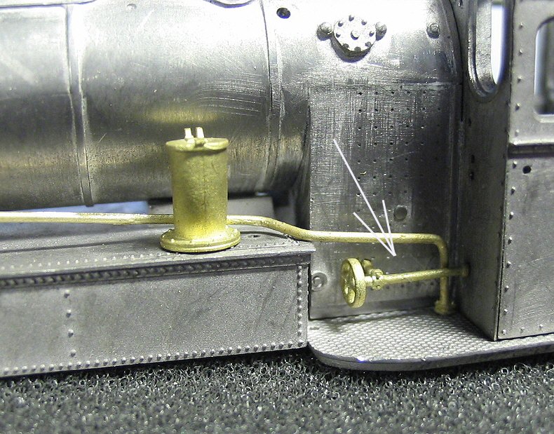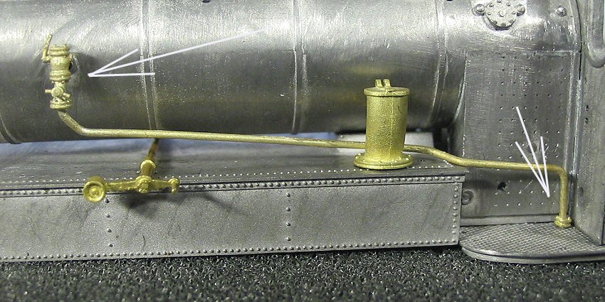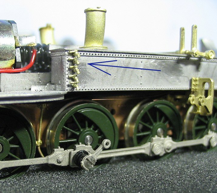 Eine besondere Herausforderung ist die Montage der kleinen Wasserkräne. Sie dienten beim Vorbild der Kontrolle des Wasserstandes. Dazu wurden einfach die Kräne aufgedreht und so geprüft ob noch Wasser aus ihnen floss. War das nicht der Fall, dann war in Höhe des Wasserkranes kein Wasser mehr im Wasserkasten. Die Kräne sind sehr klein und können nur mit Hilfe ein Pinzette montiert. Glücklicherweise liegen dem Bausatz mehr Kräne als benötigt bei. Es passiert schon einmal, dass ein Kran auf nimmer wiedersehen von der Pinzette springt.